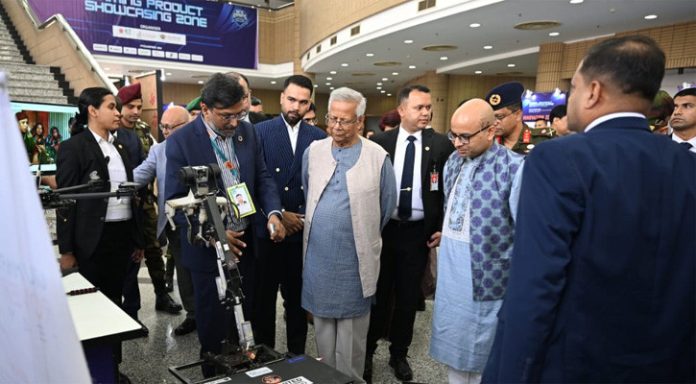 রাজধানীর বাংলাদেশ-চীন মৈত্রী সম্মেলন কেন্দ্রে (বিসিএফসিসি) আজ ডিজিটাল ডিভাইস অ্যান্ড ইনোভেশন এক্সপো–২০২৬-এর উদ্বোধন করেছেন প্রধান উপদেষ্টা অধ্যাপক মুহাম্মদ ইউনূস। একই সঙ্গে তিনি ‘বাংলাদেশ ইনোভেশন চ্যালেঞ্জ’-এর ওয়েবসাইট ও লোগো উন্মোচন করেন। বুধবার (২৮ জানুয়ারি) এই প্রদর্শনীর উদ্বোধন করেন প্রধান উপদেষ্টা। পরে প্রধান উপদেষ্টা প্রদর্শনীর বিভিন্ন স্টল ঘুরে দেখেন। প্রদর্শনী চলবে ৩১ জানুয়ারি পর্যন্ত।